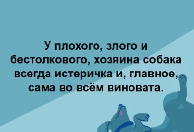 У плохого, злого и бестолкового, хозяина собака всегда истеричка и, главное, сама во всём виновата.
