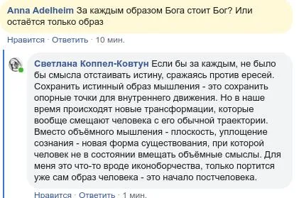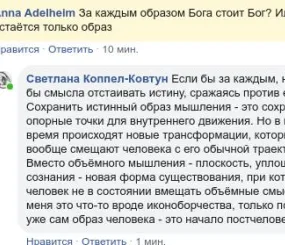 Мой ответ: Если бы за каждым, не было бы смысла отстаивать истину, сражаясь против ересей. Сохранить истинный образ мышления - это сохранить опорные точки для внутреннего движения. Но в наше время происходят новые трансформации, которые вообще смещают человека с его обычной траектории. Вместо объёмного мышления - плоскость, уплощение сознания - новая форма существования, при которой человек не в состоянии вмещать объёмные смыслы. Для меня это что-то вроде иконоборчества, только портится уже сам образ человека - это начало постчеловека.