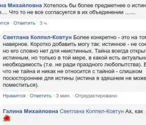 Вопрос: Хотелось бы более предметнее об истине и тайне.... Что-то не все согласуется в их объединении .......