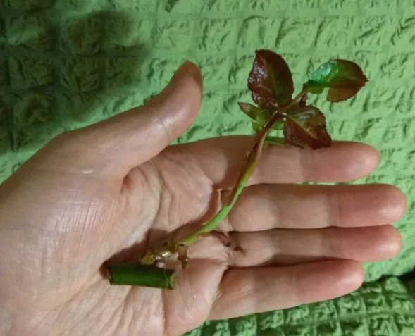 Раньше аналогичный росточек обнаружился на розе, которую мне подарила дочка - готовый черенок для посадки. Он стоит у меня в стакане с водой (надеюсь, что пустит корешки). Такой самостоятельный росточек, который и натолкнул на мысль о посадке его в качестве отдельного растения. Сразу бросилось в глаза: роза - отдельно, росточек - отдельно (приложение к ней, а не часть её), хоть и на её «стволе».