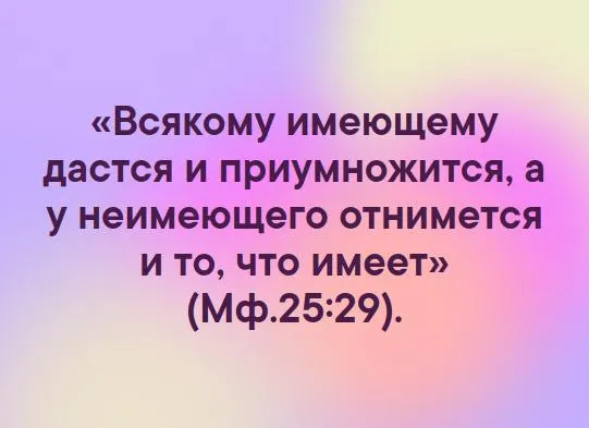 «Всякому имеющему дастся и приумножится, а у неимеющего отнимется и то, что имеет»