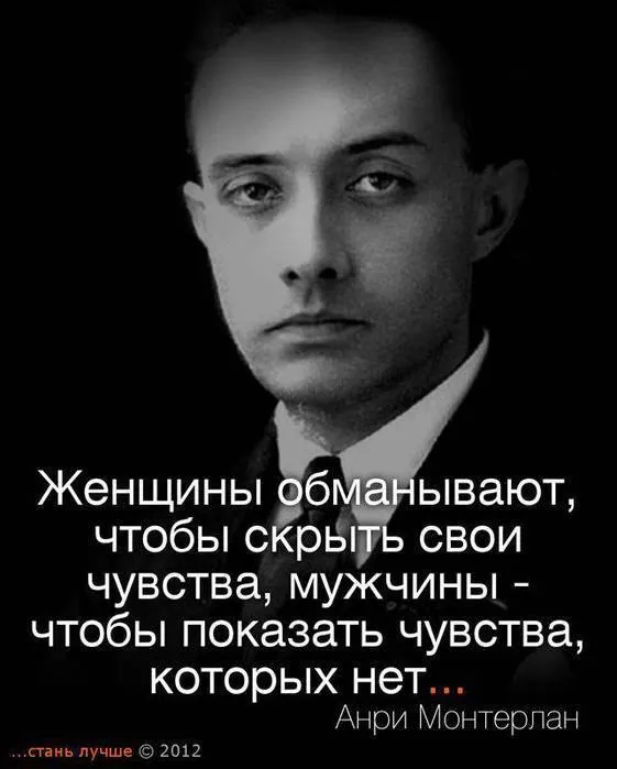 Женщины обманывают, чтобы скрыть свои чувства, мужчины - чтобы показать чувства, которых нет...