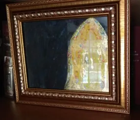 Живой свет, очень смиренный и КРОТКИЙ*, стоящий в уголке большой и тёмной внутренней комнаты. Покрывало светится чистейшим ТЁПЛЫМ (тёплый белый свет)! золотым светом (при отсутствии красного цвета)**. Бело-золотое или золото-серебрянное***. Но не сияющее, не сверкающее - спокойное внутреннее свечение, тихий свет. И каждая его клеточка-точечка-искорка - живая, дышащая, почти шевелящаяся, но нет. Предельная жизнь без напряжения - концентрация тишины, кротости и надежды. Скромно в уголке ждущая чего-то и даже как бы не показывающая себя, но и не прячущая.