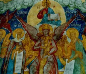 «И Дух Божий носился над водой» - это была София или нет? София представляет Дух Божий, она - тот самый Голубь, который явился при Богоявлении. Она Дух Святой, почивший на Христе. София - птица, охватившая своими крылами тело Христово. И купола церквей, вероятно, о ней свидетельствуют (помнят и знают - одновременно, хранят память в нас и присутсвуют в Присутствии, как бы предстоят).