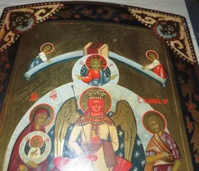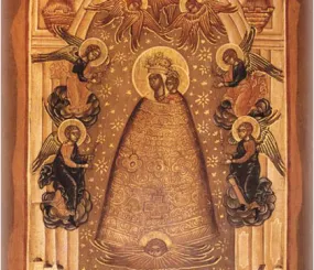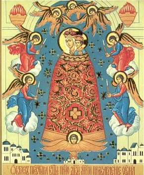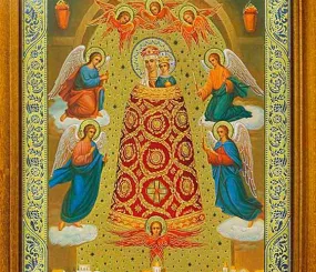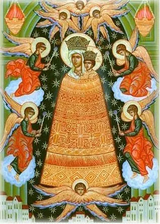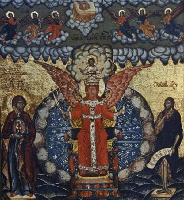 Поняла, что моя София напоминает изображение иконы Богородицы «Прибавление Ума» (Подательница Ума). Уверена, что на иконе изображено то же самое явление (феномен). Богородица почитается как вместившая в себя Софию. Она словно одета в этот «колокол», как в кокон. Быть может уместно вспомнить фильм «Аватар», тогда удобно будет сказать по аналогии с фильмом, что личность «надевает» свою природу примерно так же, как герои фильма надевали свои аватары. И у нашей человеческой природы тогда два наряда: ветхий и новый.