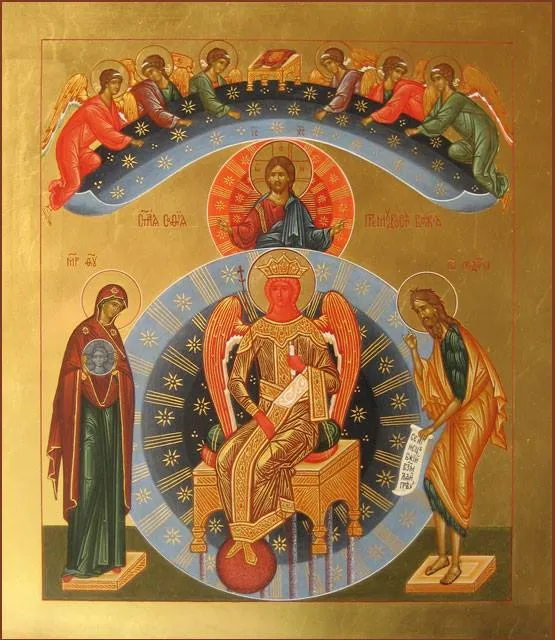 На иконе «Прибавление ума» в Фелонь (символ Софии, как я понимаю) одеты Христос и Богородица, Богородица и Христос. Это говорит о том, что София - одеяние, в которое одевается личность 1); священническая фелонь - символ Софии 2).