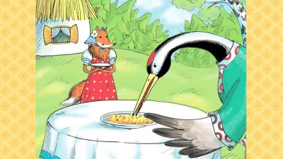 Пошел журавль на званный пир. А лиса наварила манной каши и размазала по тарелке. Подала и потчевает: