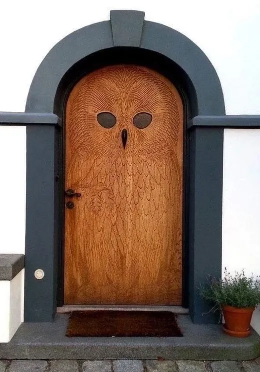 Деревянная дверь в виде совы. 1930-е