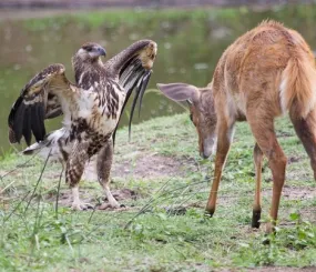 Заяц, встречаясь с волком, дрожит от страха.