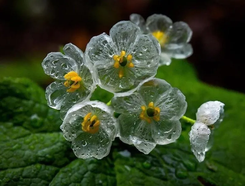 Когда на лепестки цветов двулистника Грея попадает вода, они становятся прозрачными, - а высохнув, опять белеют.