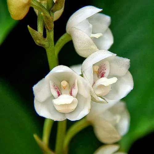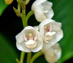 Цветёт «Голубь» редко, на стебле распускается от 2 до 4 бутонов, причем первый всегда тот, что ниже остальных. Цветы Орхидеи Перистерии высокой – белоснежные, иногда имеют желтоватый оттенок ближе к краю лепестка. На внутренней части бутонов отчетливо видны сиреневые или фиолетовые пятнышки.