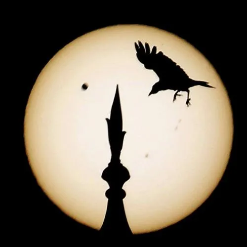 4. Птица и один из шпилей Тадж-Махала на фоне Солнечного диска во время транзита Венеры.