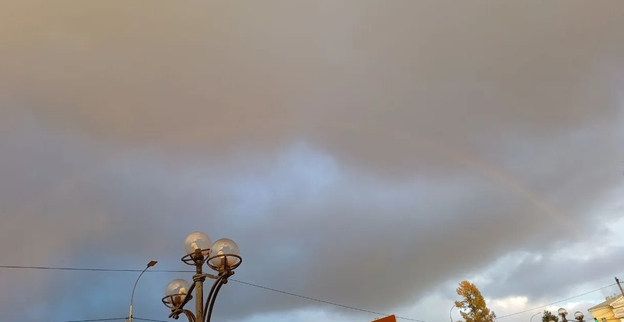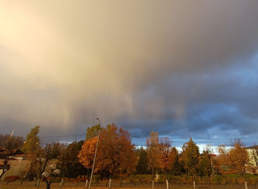 15 октября 2025. Такое великолепие было у нас сегодня в небе. Фотографировала и боялась, что не получится запечатлеть, но, кажется, отчасти удалось. Мы с Ве промокли, и это было приятно, потому что падала на нас каплями вот эта красота