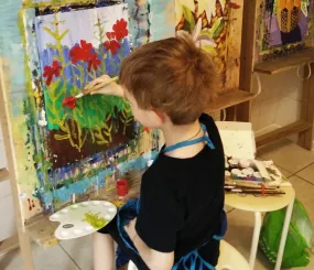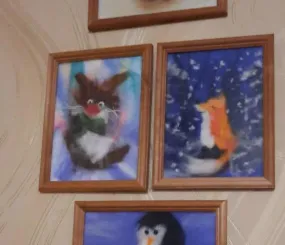 Внук решил нарисовать потрет мамы (моей дочки), вдохновившись моим портретом дочки, и вот что вышло у него. Потом дочка нарисовала его (её результат справа).